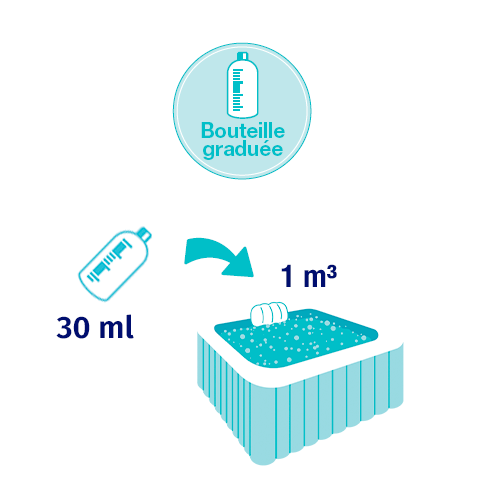 Dosage : 30 ml pour 1m³ tous les 15 jours